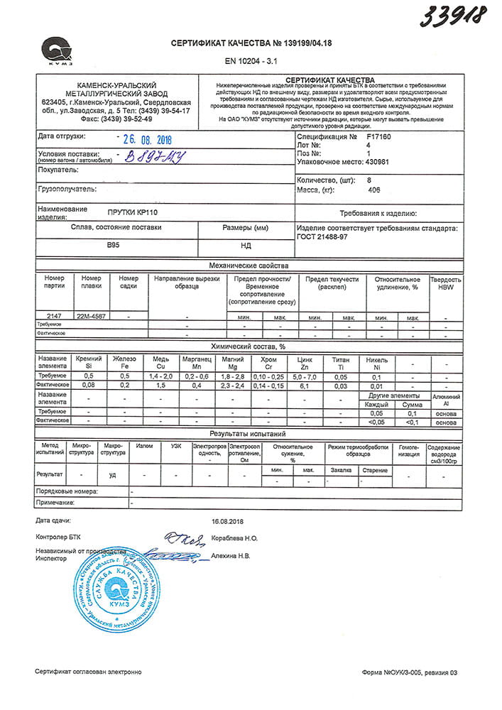Также прутки изготавливают из технического алюминия повышенной чистоты, других марок, соответствующих по химическому составу ГОСТ 11069.